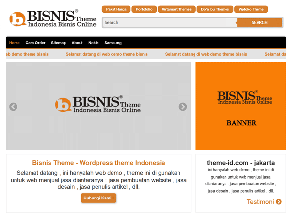 theme ini saya beri nama bisnis theme , theme untuk bisnis online yang di lengkapi dengan featured lengkap form order , paket produk , portofolio , testimoni , post update artikel , sitemap dll