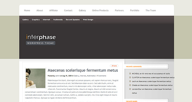 InterPhase is a beautiful, clean design that maintains a “cutting edge” feel without loosing its sense of professionalism. This theme comes with a large array of custom options pages that let you customize everything from the font color to the 125×125 banner image in the sidebar.