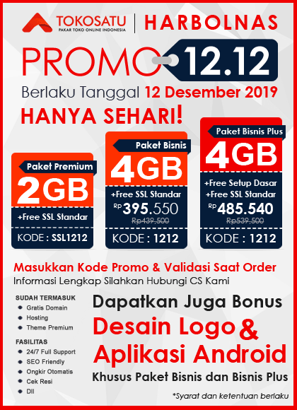 Hallo, Sobat Tokosatu.com. Jasa Pembuatan Website #1 Terpopuler di Indonesia, Profesional, Harga Murah, Kualitas Terjamin hanya di Toko Satu. Telah dipercaya ribuan klien, silakan lihat portofolio tokosatu.com saat ini kembali menghadirkan Promo 1212 pada tanggal 12 Desember 2019.