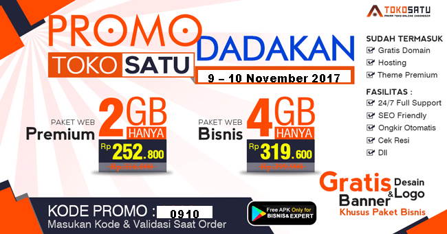 Hallo, Apa Kabar ? Ketemu lagi di Jasa Pembuatan Website #1 Terpopuler di Indonesia, Profesional, Harga Murah, Kualitas Terjamin hanya di Toko Satu. Telah dipercaya ribuan klien, silakan lihat portofolio tokosatu.com saat ini kembali menghadirkan Promo Dadakan mulai pada tanggal 9 – 10 November 2017