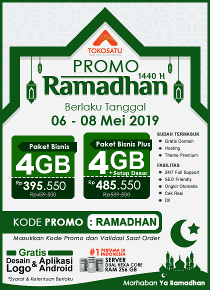 Hallo, Sobat Tokosatu.com. Jasa Pembuatan Website #1 Terpopuler di Indonesia, Profesional, Harga Murah, Kualitas Terjamin hanya di Toko Satu. Telah dipercaya ribuan klien, silakan lihat portofolio tokosatu.com, saat ini kembali menghadirkan Promo Ramadhan berlaku pada tanggal 06 – 08 Mei 2019.