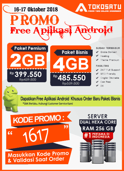 Hallo, Sobat Tokosatu.com. Jasa Pembuatan Website #1 Terpopuler di Indonesia, Profesional, Harga Murah, Kualitas Terjamin hanya di Toko Satu. Telah dipercaya ribuan klien, silakan lihat portofolio tokosatu.com saat ini kembali menghadirkan Promo Weekend pada tanggal 16 – 17 Oktober 2018.