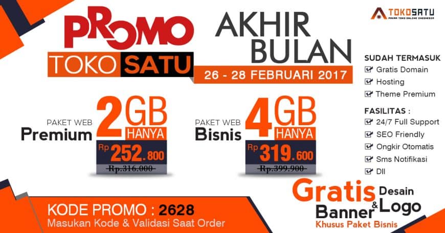 Dear All, Toko Satu Menghadirkan Promo Akhir Bulan mulai pada tanggal 26 – 28 Februari 2017