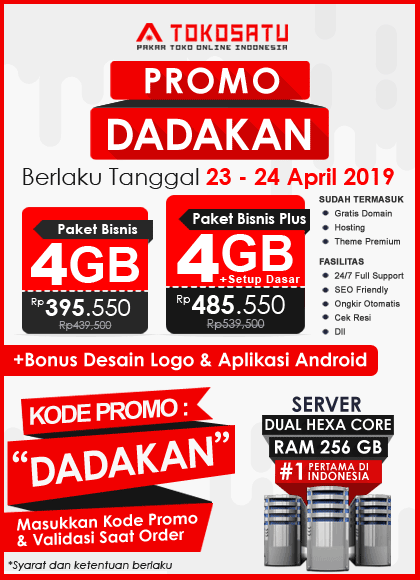Hallo, Sobat Tokosatu.com. Jasa Pembuatan Website #1 Terpopuler di Indonesia, Profesional, Harga Murah, Kualitas Terjamin hanya di Toko Satu. Telah dipercaya ribuan klien, silakan lihat portofolio tokosatu.com, saat ini kembali menghadirkan Promo DADAKAN berlaku pada tanggal 23 – 24 April 2019.
