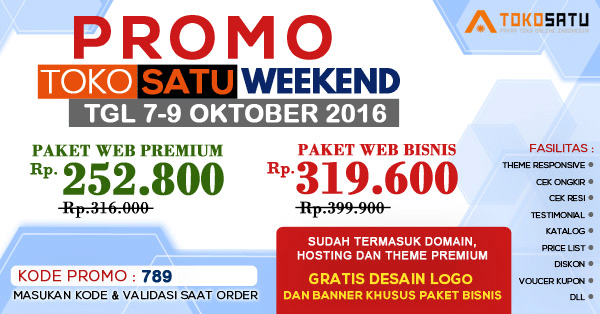 - Pilihan Template untuk program promo ini khusus pada Theme Toko Online Indonesia.