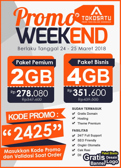 Hallo, Apa Kabar ? Ketemu lagi di Jasa Pembuatan Website #1 Terpopuler di Indonesia, Profesional, Harga Murah, Kualitas Terjamin hanya di Toko Satu. Telah dipercaya ribuan klien, silakan lihat portofolio tokosatu.com saat ini kembali menghadirkan Promo Weekend mulai pada tanggal 2425 Maret 2018.