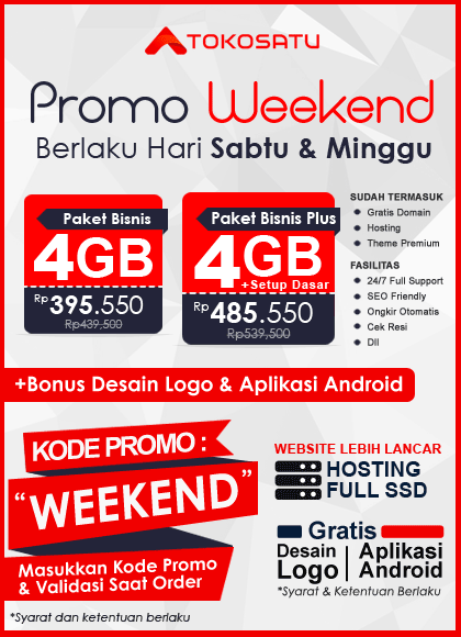 Hallo, Sobat Tokosatu.com. Jasa Pembuatan Website #1 Terpopuler di Indonesia, Profesional, Harga Murah, Kualitas Terjamin hanya di Toko Satu. Telah dipercaya ribuan klien, silakan lihat portofolio tokosatu.com, saat ini kembali menghadirkan Promo Weekend pada tanggal 20-21 Februari 2021.