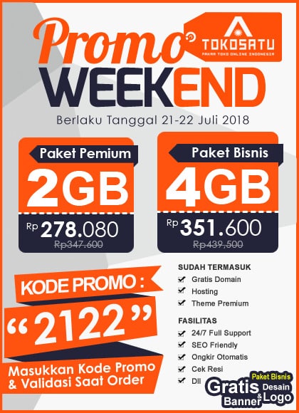 Hallo, Apa Kabar ? Ketemu lagi di Jasa Pembuatan Website #1 Terpopuler di Indonesia, Profesional, Harga Murah, Kualitas Terjamin hanya di Toko Satu. Telah dipercaya ribuan klien, silakan lihat portofolio tokosatu.com saat ini kembali menghadirkan Promo Weekend pada tanggal 21 – 22 Juli 2018.