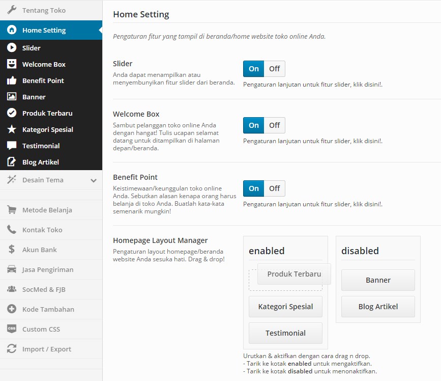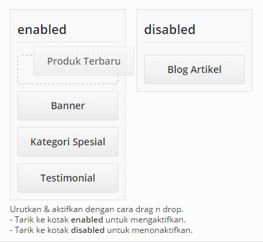 Atur urutan fitur-fitur yang dapat ditampilkan pada halaman beranda (homepage), sangat mudah dan fleksibel sekali.