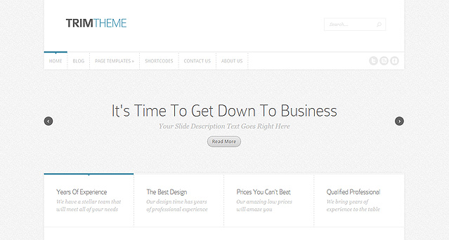 Trim is simple, professional, versatile and fast. We have had a lot of requests for a less stylistic, lightweight design, and that is exactly what we created. Trim might be simple, but with that simplicity comes a sense of balance and crispness that is quite refreshing. Coupled with a bunch of great features, Trim is a great theme that will prove useful for a variety of different websites.
