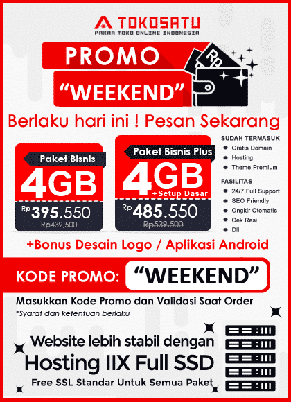 Hallo, Sobat Tokosatu.com. Jasa Pembuatan Website #1 Terpopuler di Indonesia, Profesional, Harga Murah, Kualitas Terjamin hanya di Toko Satu. Telah dipercaya ribuan klien, silakan lihat portofolio tokosatu.com, saat ini kembali menghadirkan Promo Weekend pada tanggal 19 – 20 Desember 2020.